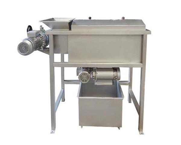 除梗破碎机结构特征及工作原理:该机主要由进料斗、除梗半筛筒、除梗轴、接料槽、破碎装置、机架、调速电机、传动部位等组成,工作时,电机带动除梗轴、破碎装置转动,葡萄从进料斗进入到除梗半筛筒内,经过半筛、除梗轴,由除梗轴旋转,除梗轴上的叶片作用将果粒与梗枝打散分离,除梗叶片呈螺旋状安装在主轴上,并高速旋转将梗枝由半筛末端排出机外。除梗后的果粒从半筛上的圆孔落入接料槽内,输送至下一工艺过程。用户可根据自己实际情况配置螺杆泵一台,由螺杆泵将除梗后的的果粒及浆液输送至下道工艺。