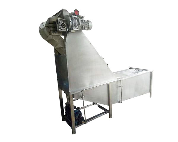描 述:该机由机架、水箱、风机、提升机、气泡管、喷水管等几部分组成,工作时由于水中风力的存在,蔬果在水中任意方向翻滚转动,并在高压水力的推动下向前移动,在出口由一刮板提升机,将果蔬送至下道工序。整体为分体式结构,水箱与输送机、进出料斗、罩板方便拆卸,易于清洗和检修。