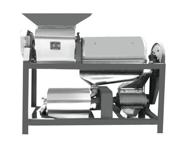 本机适用于番茄取籽,取籽率92%以上。采用粗破碎、离心分离、细破碎、取籽分离和浆渣分离。